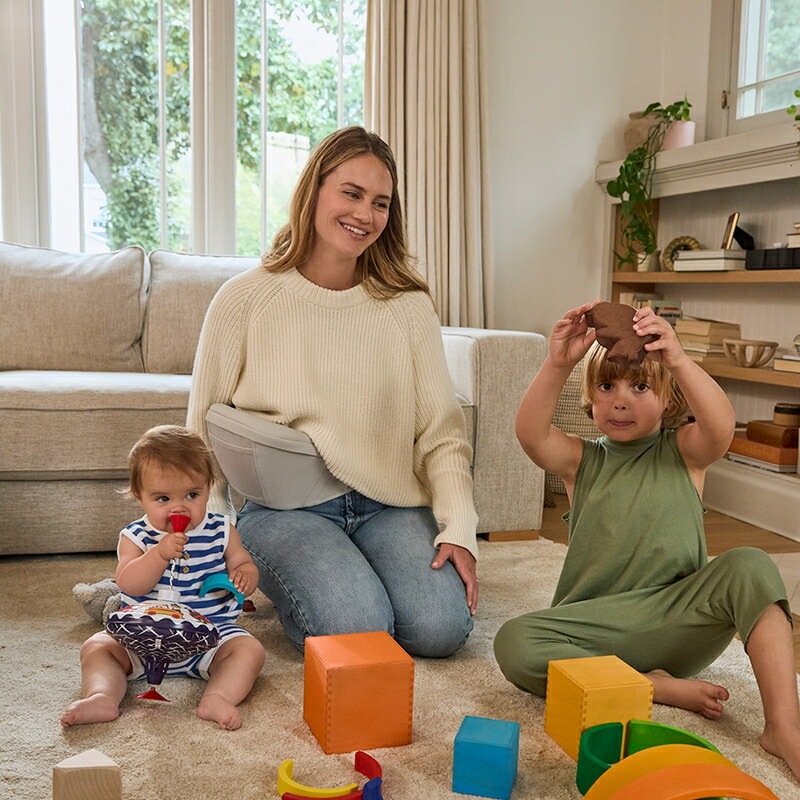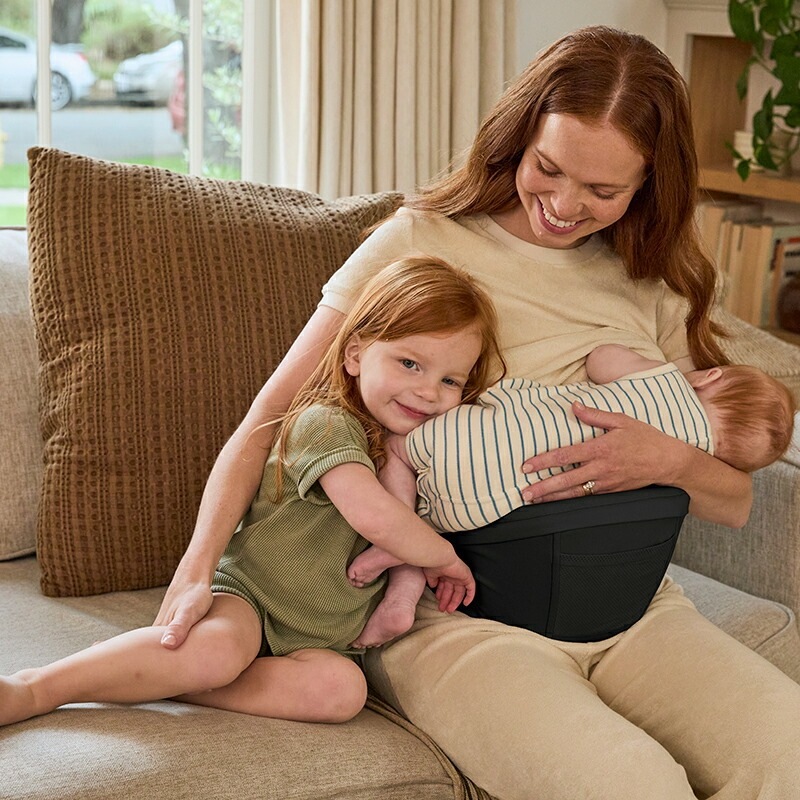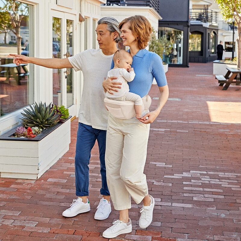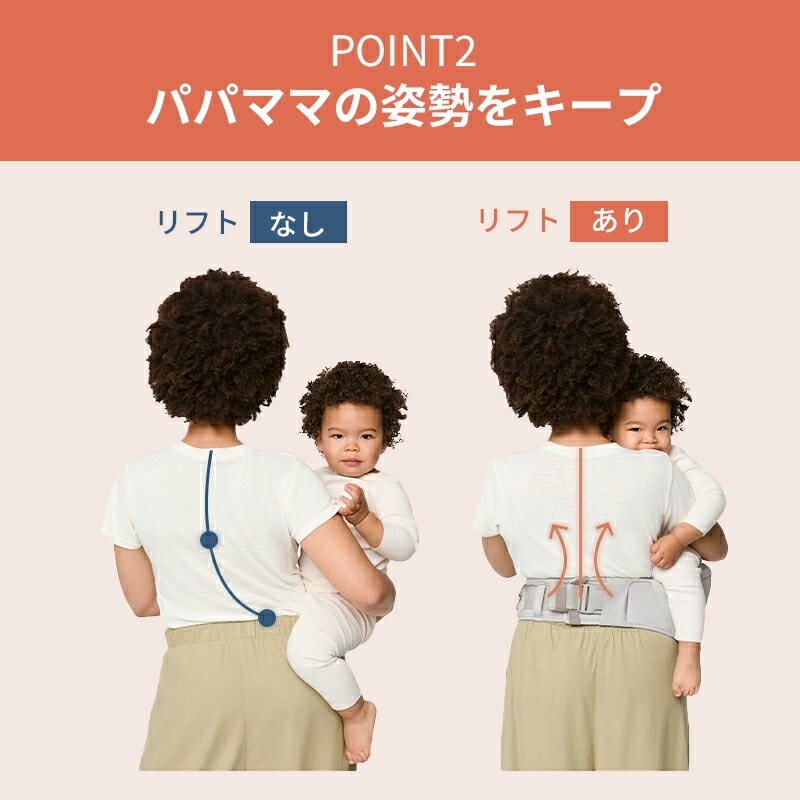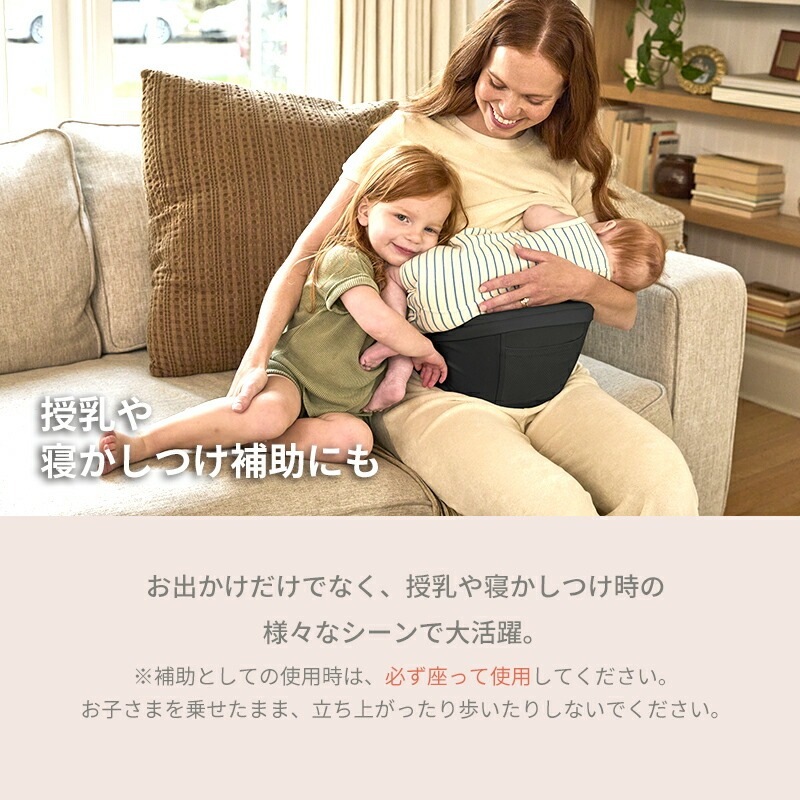 乗せ降ろしが増えても、ヒップシートで手軽に抱っこ。