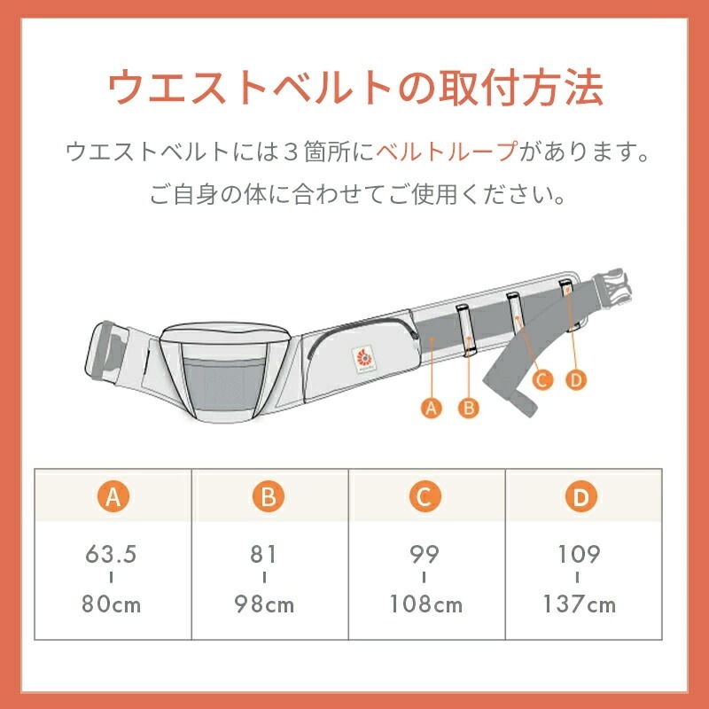 ■ウエストサイズ:ウエストベルトの長さ 63.5cm~137cm