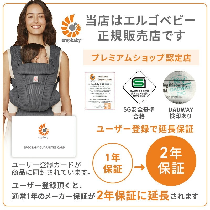 当店のエルゴベビーはメーカー保証がついた国内正規品です。