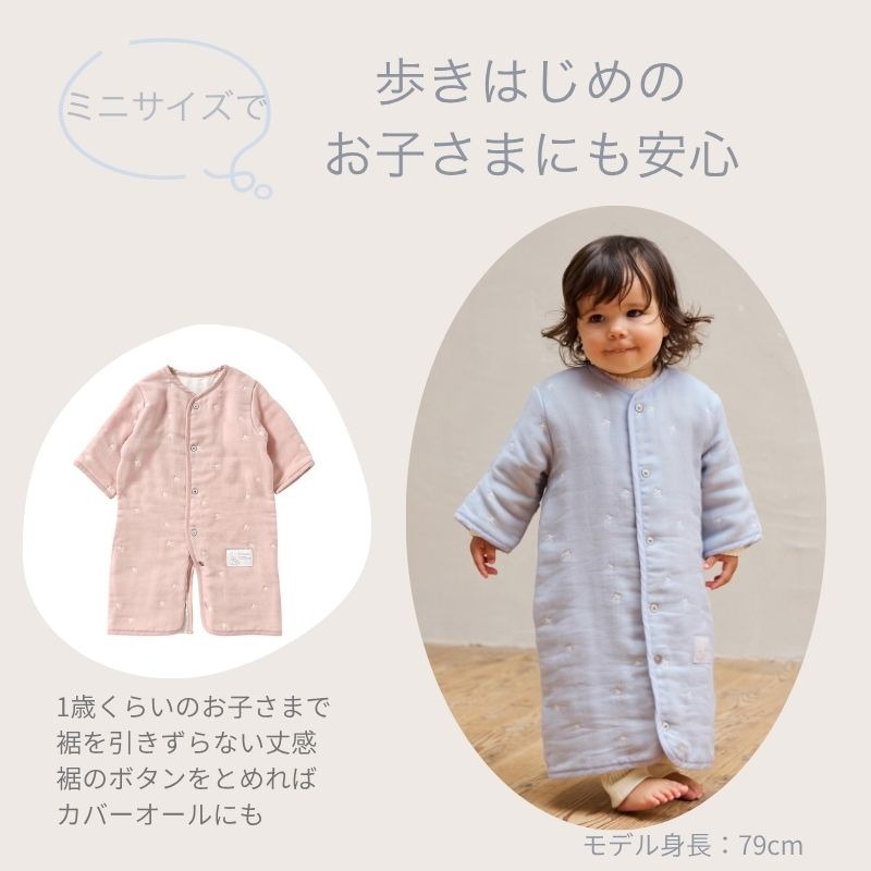 6wayで使えるスリーパー。手足をくるんでお布団のかわりにも。 お布団が赤ちゃんのおかおにかかる心配がなく安心。 手足をくるむことができるので、寝冷えを防いでくれます。 歩きはじめのお子さまのサイズにあわせているので、足元の長さもピッタリ! ふっくら6重ガーゼ。安心の日本製です。 出産祝いにもおすすめです。 ■商品:6wayスリーパー mini ■サイズ:着丈:約60cm 身巾:約35cm ■素材 コットン100% ■生産国:日本 ■注意事項 ・塩素系漂白剤・蛍光増白剤を使用しないで下さい。 ・洗濯後は濡れたまま放置せず、形を整えて日陰で干して下さい。 ・洗濯ネットを使用して下さい。 |