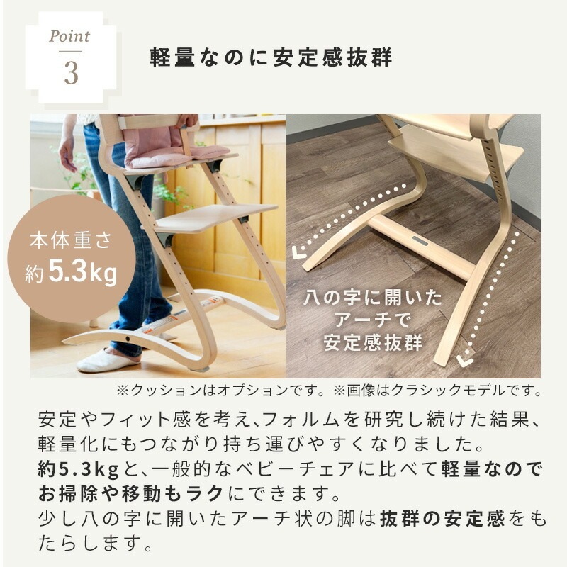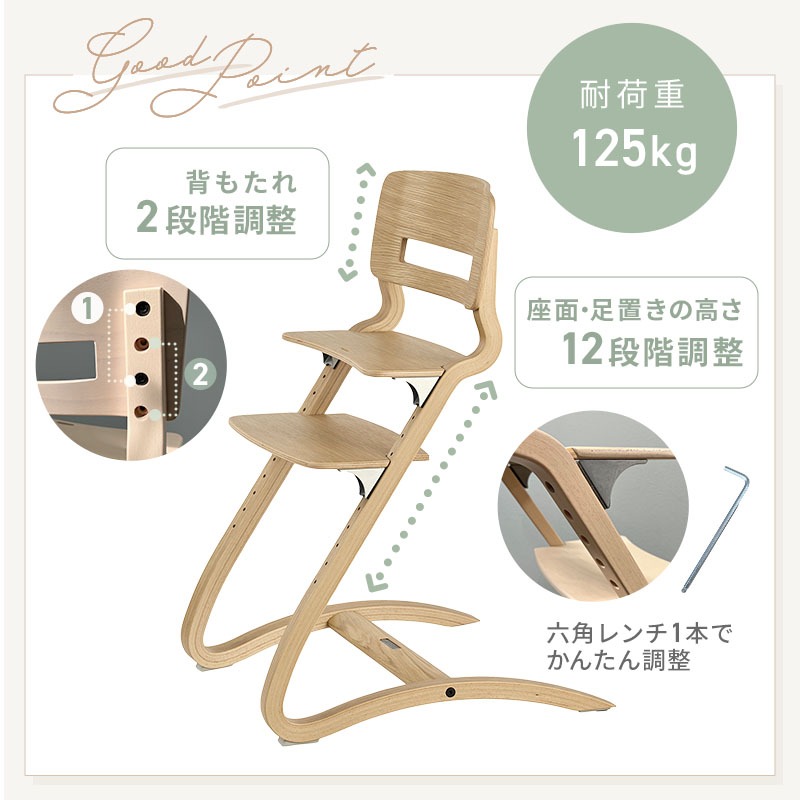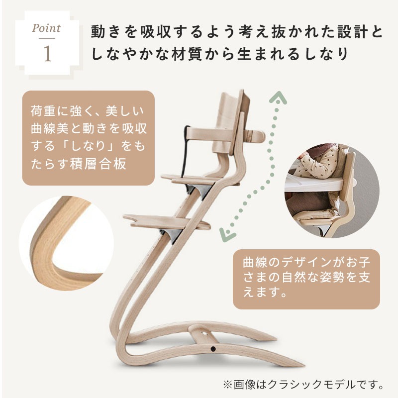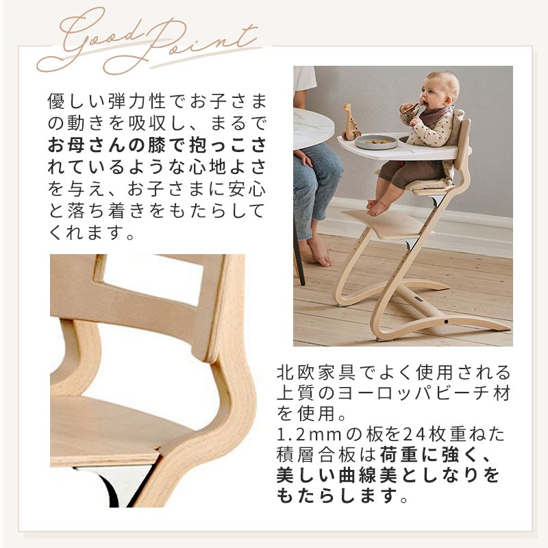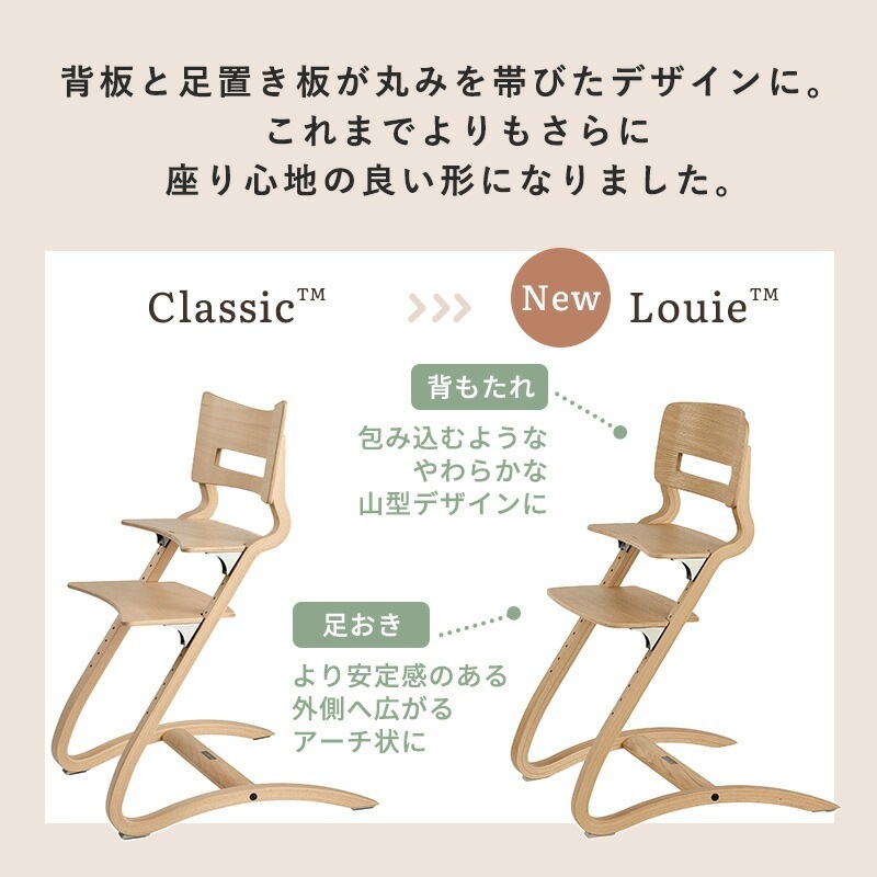 | リエンダーから新しいハイチェア「Louie」(ルーイー)が登場。 背板と足置き板が丸みを帯びたデザインに。これまでよりもさらに座り心地の良い形になりました。 <お食事スタート応援セット> 同時購入で4,950円お得な※[ Louie チェア+セーフティーバー]の同色2点セット ※オークの場合は6,600円お得! 子どもは食事の時でさえほとんどじっと座ってはいません。 じっと座っていられない子どものために、その動きを吸収するよう考え抜かれた設計と、「しなり」を生み出すしなやかな材質によって完璧なフィット感を生み出します。 「座る」と「動く」の両方を考えた椅子、それがリエンダー社のハイチェアです。 <ハイチェア> ■サイズ:幅55×奥行56×高さ82cm 座面:高さ40~56cm 足置き台:高さ27~48cm ■対象年齢 6カ月~大人 ■重量:約5.3kg ■耐荷重:125kgまで ■材質:木の種類:ヨーロッパビーチ(ブナ)材 / オーク材(オーク) ■保証:メーカー製品保証10年 <ハイチェア専用 セーフティーバー> ■サイズ:幅30×奥行24×高さ4cm ■対象年齢:6カ月~3歳頃まで ■材質: 木材 : ブナ(ビーチ)材 / オーク材(オーク) レザーストラップ : 牛革 ■保証:メーカー製品保証10年 ??注意事項: ・6ヶ月から3歳未満のお子様がハイチェアを使用される場合は、セーフティーバー・股ベルトを必ず使用してください。 ・天然素材使用しているため、木目、色合いには個体差があります。 |