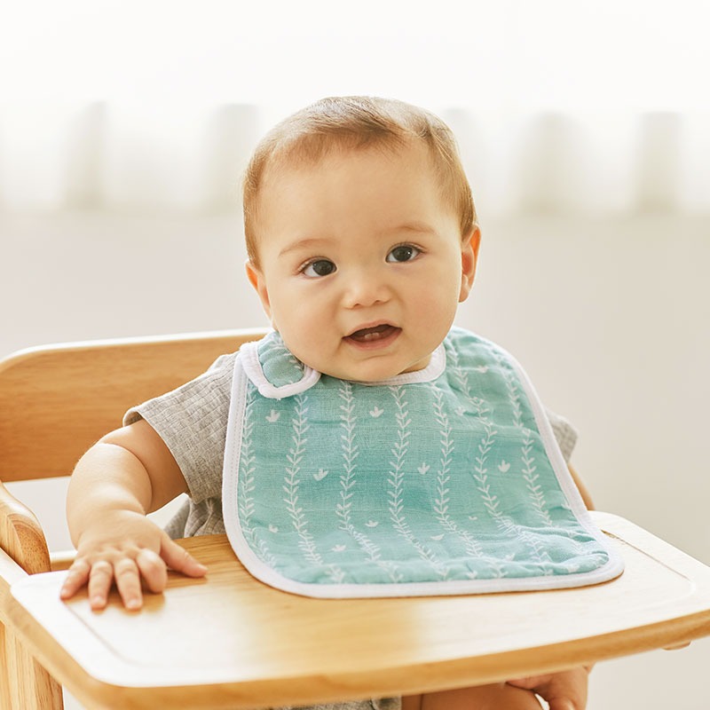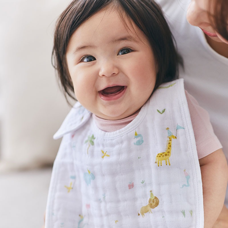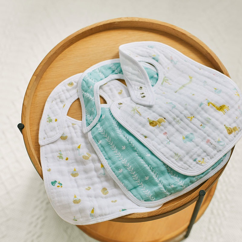 | aden + anais(エイデンアンドアネイ)のコットンモスリン素材で作られたスナップビブ。 |